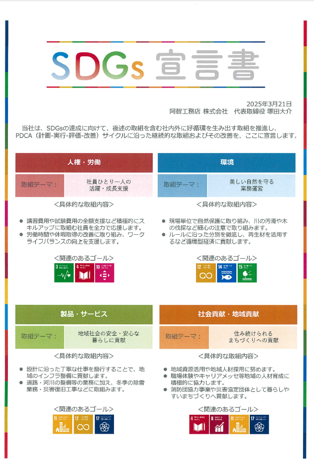 阿智工務店は、取引先さまとの「共存共栄」と、持続可能な地域経済の発展を目指し、パートナーシップ構築宣言を行いました。